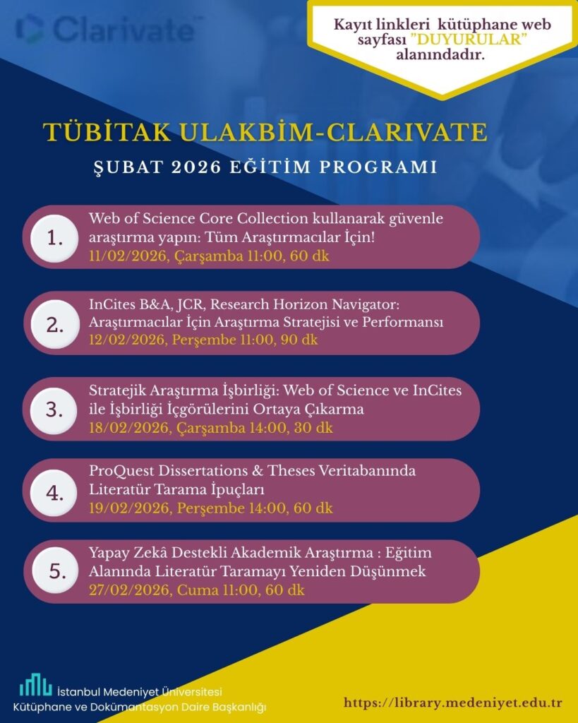 TÜBİTAK ULAKBİM EKUAL- CLARIVATE Şubat 2026 Eğitim Programı