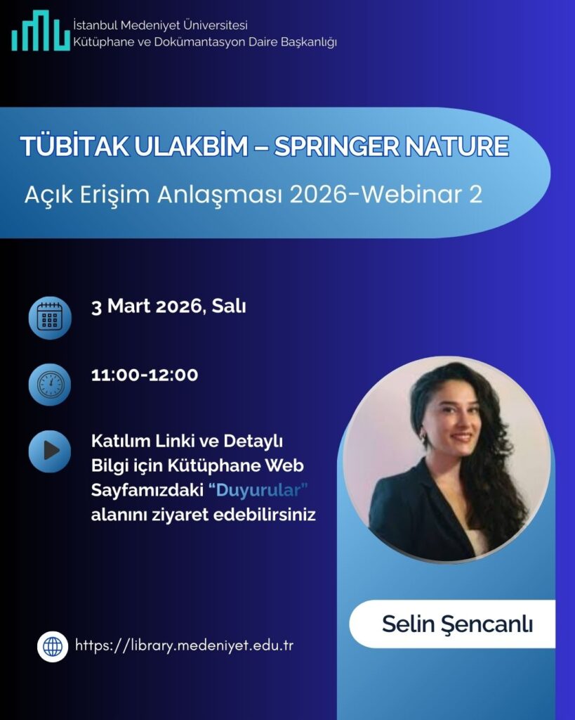 27 Şubat 202627 Şubat 2026 TÜBİTAK ULAKBİM- Wiley “Ücretsiz Açık Erişim Makale Yayımlama Anlaşması Webinarı”