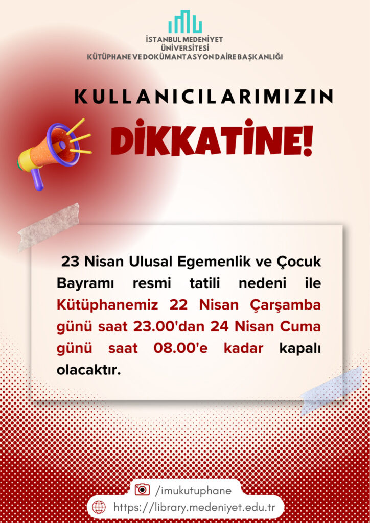 23 Nisan 2026 Kütüphane Çalışma Saatleri