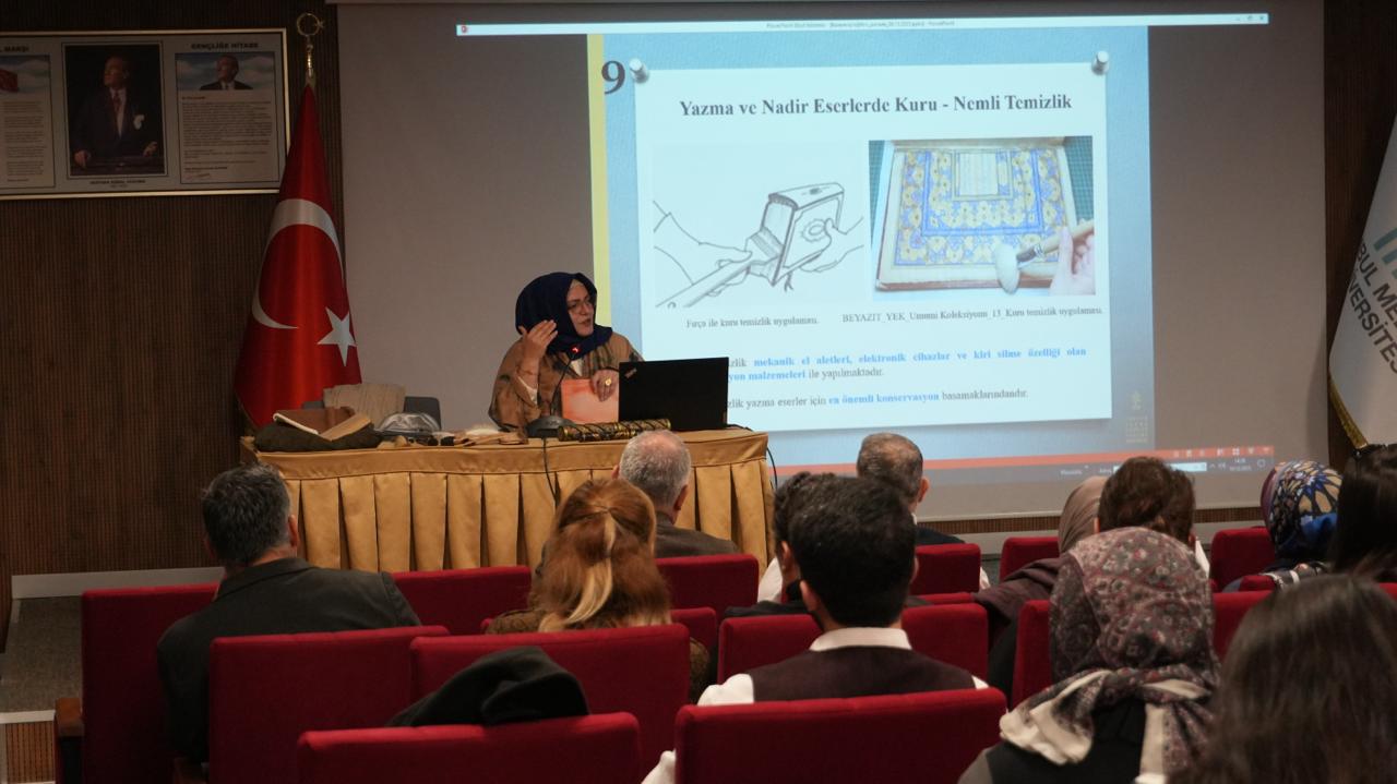 İstanbul Medeniyet Üniversitesi Ziraat Bankası Kütüphanesi bünyesinde yer alan Ziraat Bankası Konferans Salonu’nda, 10 Aralık 2025 tarihinde “Nadir Eserlerde Önleyici Koruma: Kuru Temizlikte Uygun Malzeme Kullanımı ve Konservasyon Uygulamaları” başlıklı bir seminer gerçekleştirildi.