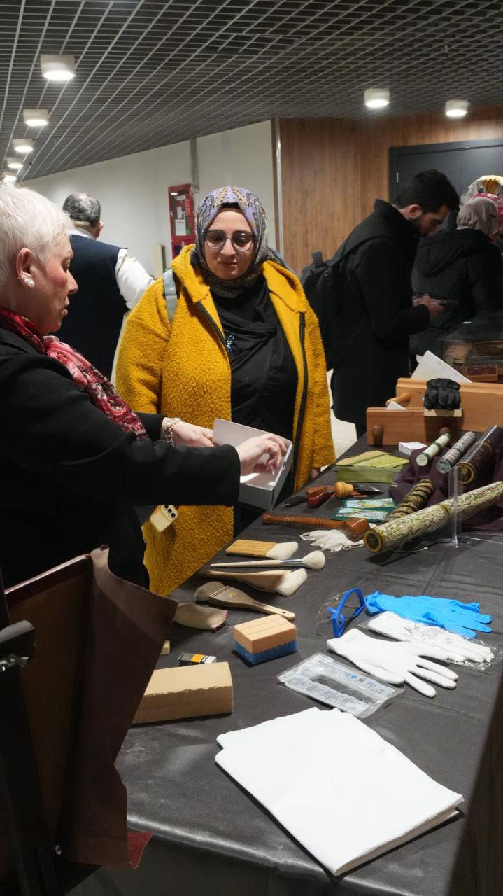 Nadir eserler alanında çalışan uzmanlar, araştırmacılar ve farklı kurumlardan temsilcilerin yoğun ilgi gösterdiği seminer kapsamında, kitap ciltleme tekniklerinde kullanılan malzemeler ile seçkin cilt örnekleri de katılımcıların incelemesine sunuldu.